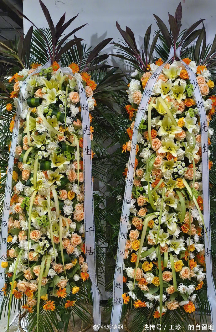 在灵堂内外则摆满了各界人士送来的花圈,可以看到郭德纲以德云社的名义送来了花圈,还可以看到赵本山、曹云金、苗阜等人都送来了花圈。